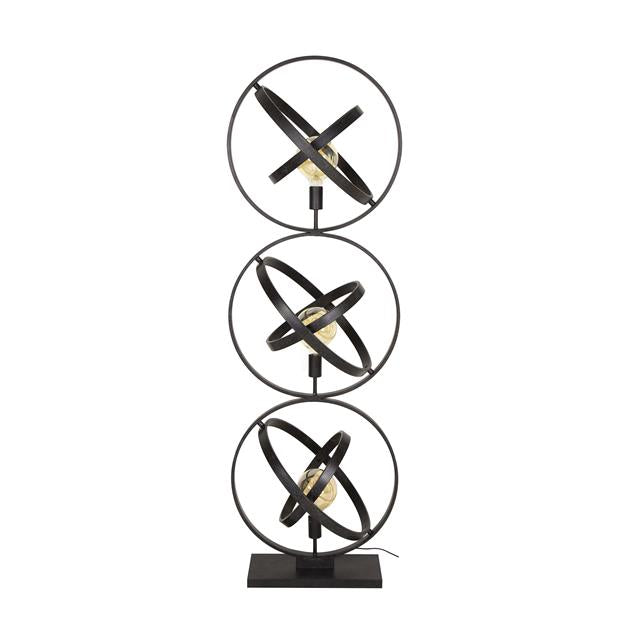 Maak kennis met onze Vloerlamp Galaxy in Zwart Metaal. Deze vloerlamp, gemaakt van metaal, is niet zomaar een lamp. De buitenste cirkels zitten stevig aan elkaar vast, terwijl de binnenste cirkels volledig rond kunnen draaien. Jij bepaalt de look en de sfeer!