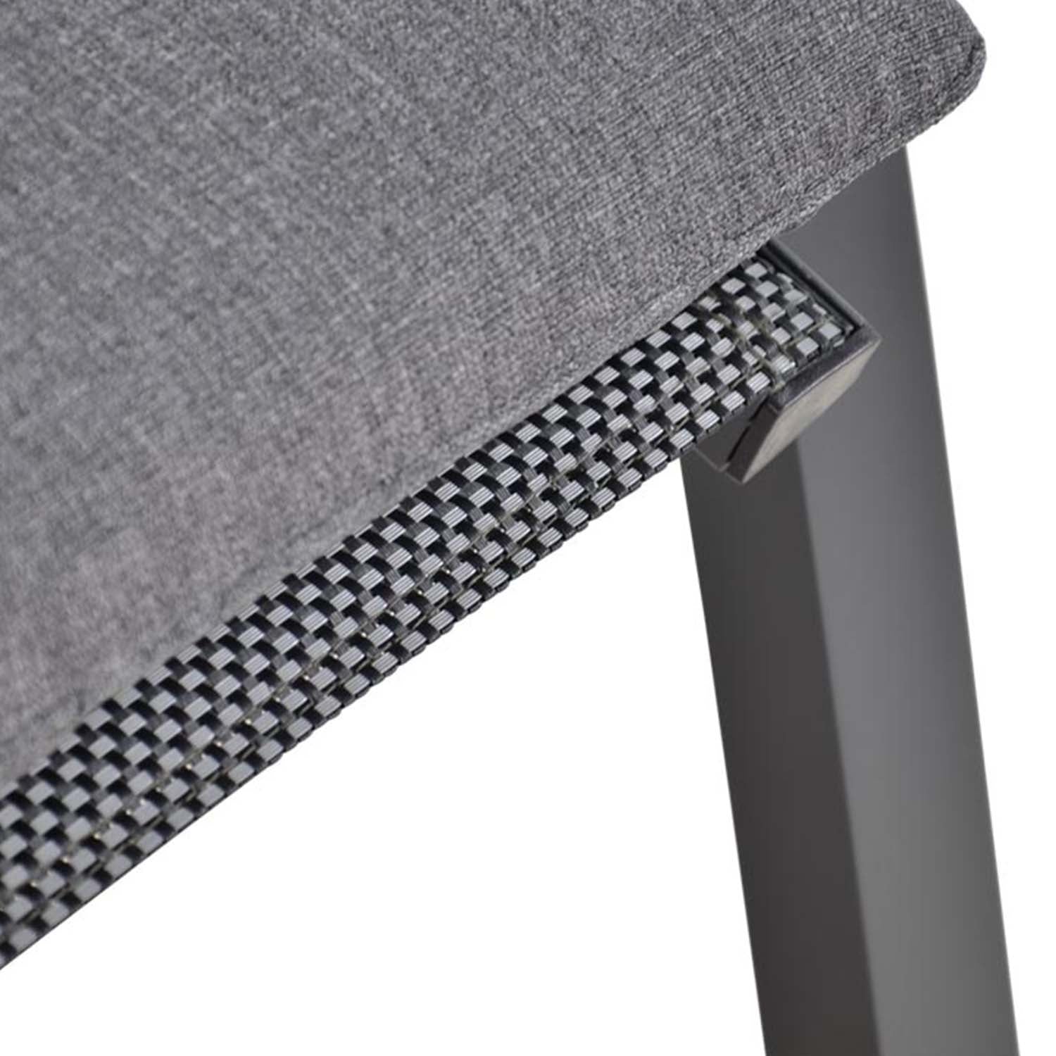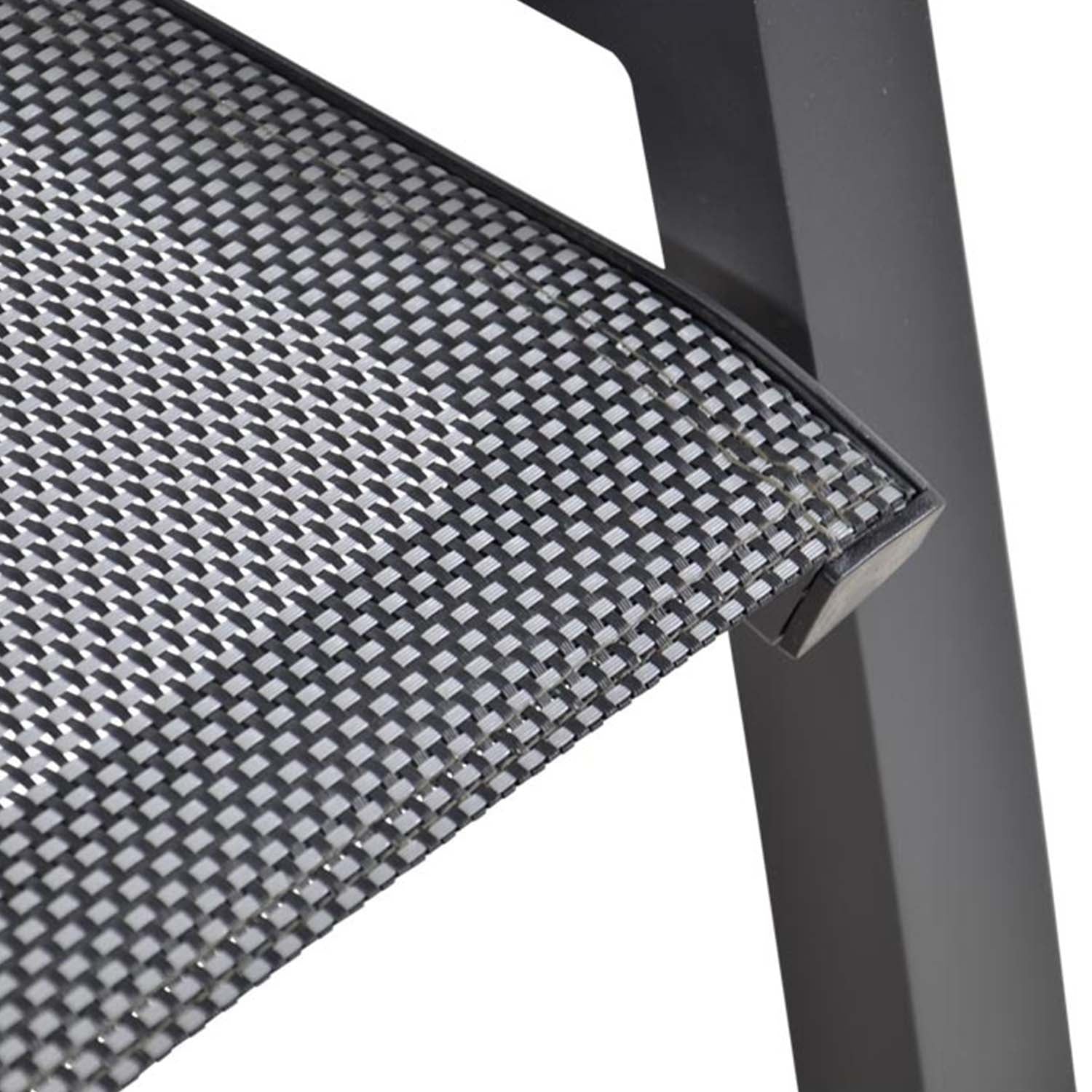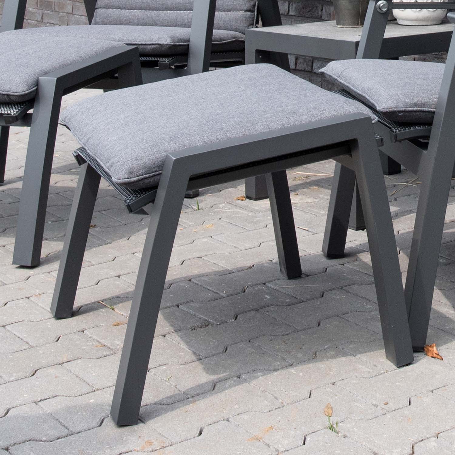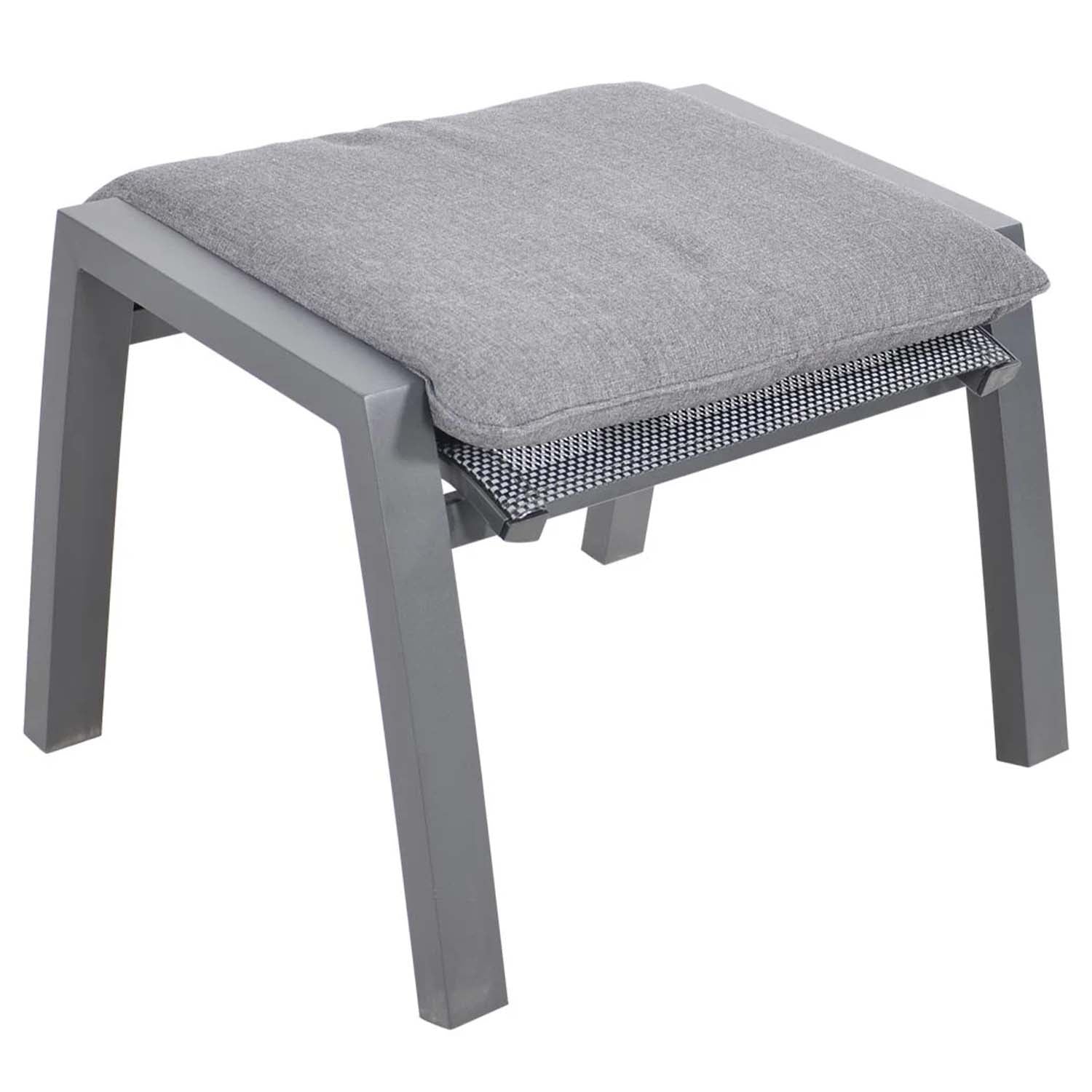 Dit tuinmeubel is voorzien van een hoogwaardig donkergrijs Olefin kussen, wat zorgt voor extra comfort en duurzaamheid. De zitting van textiel in zwart-grijs maakt hem zowel stijlvol als functioneel. De afmetingen van 63x55,5x45 cm en een zithoogte van ca. 45 cm maken hem ruim en comfortabel, ideaal voor langdurig gebruik. Het aluminium materiaal is bestand tegen slijtage en corrosie, waardoor de voetenbank langdurig zijn kwaliteit behoudt. Met een maximale belastbaarheid van 100 kg is hij bovendien zeer stevig.