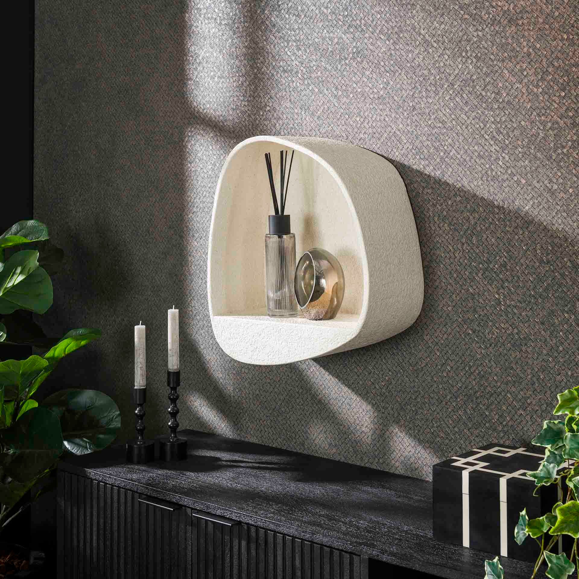 Dit wandschap is ideaal voor het tonen van je favoriete decoratieve items, boeken, of gewoon om extra opbergruimte te bieden. Het wandmeubel kan perfect worden gecombineerd met één of twee andere schapjes uit dezelfde serie. Met behulp van een strip kan het wandschap aan de muur gemonteerd worden, zoals te zien is op de foto.