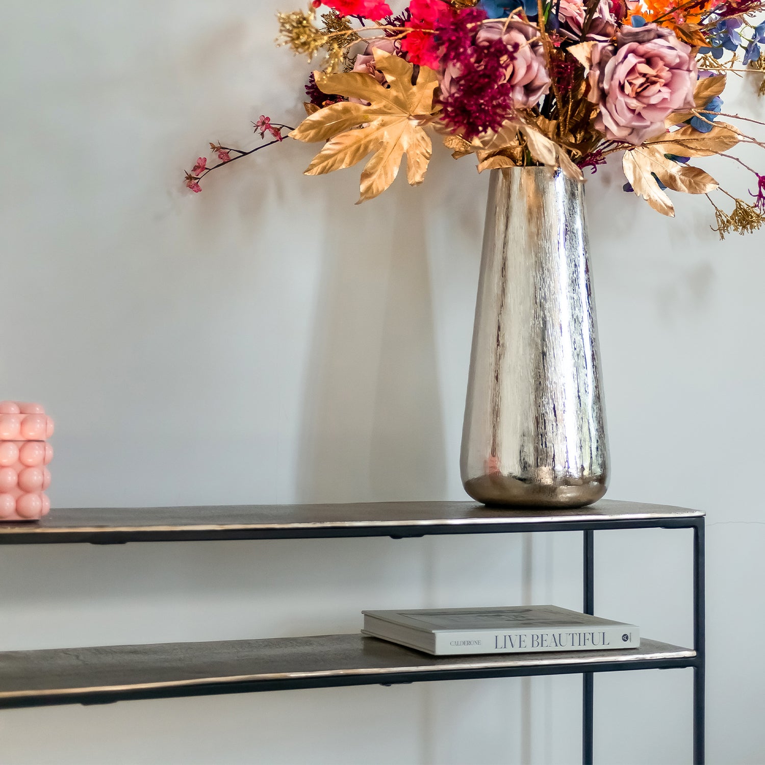 Wil je een bijzettafel kopen die goed bij je huis past? Dan is Wandtafel Chandon een goede keuze! Chandon is gemaakt van aluminium en ijzer en komt in een stijlvolle gouden kleur met zwarte poten. Deze bijzettafel is ideaal om tegen de wand aan te zetten, waardoor hij niet alleen functioneel is, maar ook een decoratief element in je ruimte vormt.