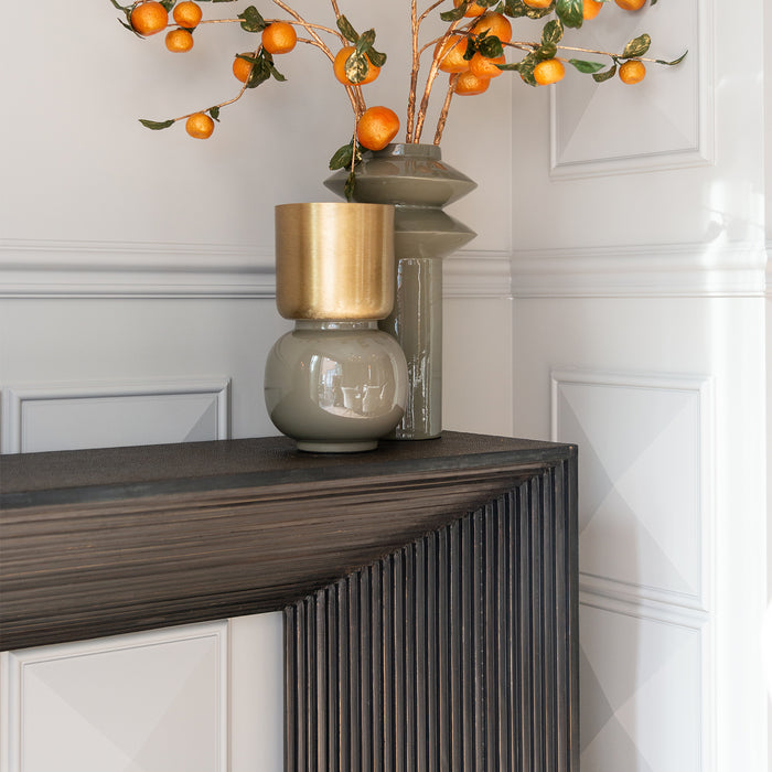 Het stevige MDF zorgt voor een duurzame en stabiele constructie, terwijl de brass cladding een vleugje glamour toevoegt. Plaats deze tafel in je gang, woonkamer of slaapkamer en gebruik het oppervlak om decoratieve items zoals vazen, kunstwerken of fotolijsten tentoon te stellen.