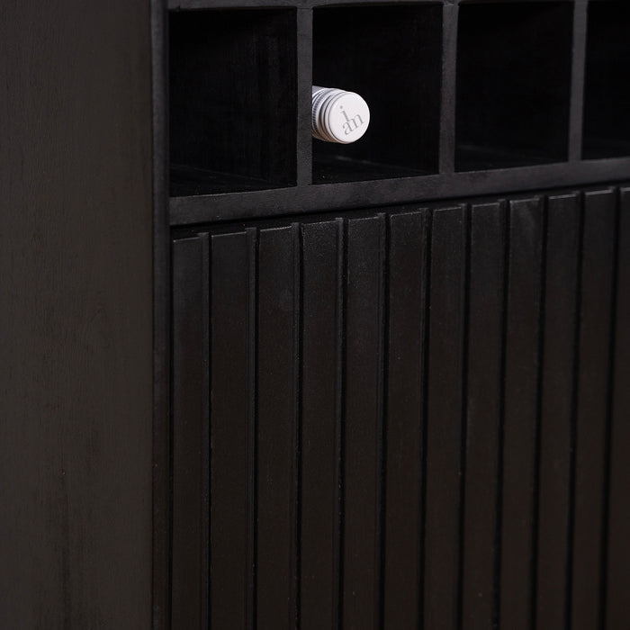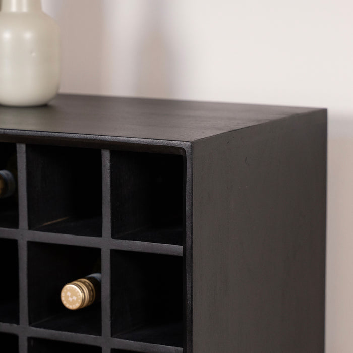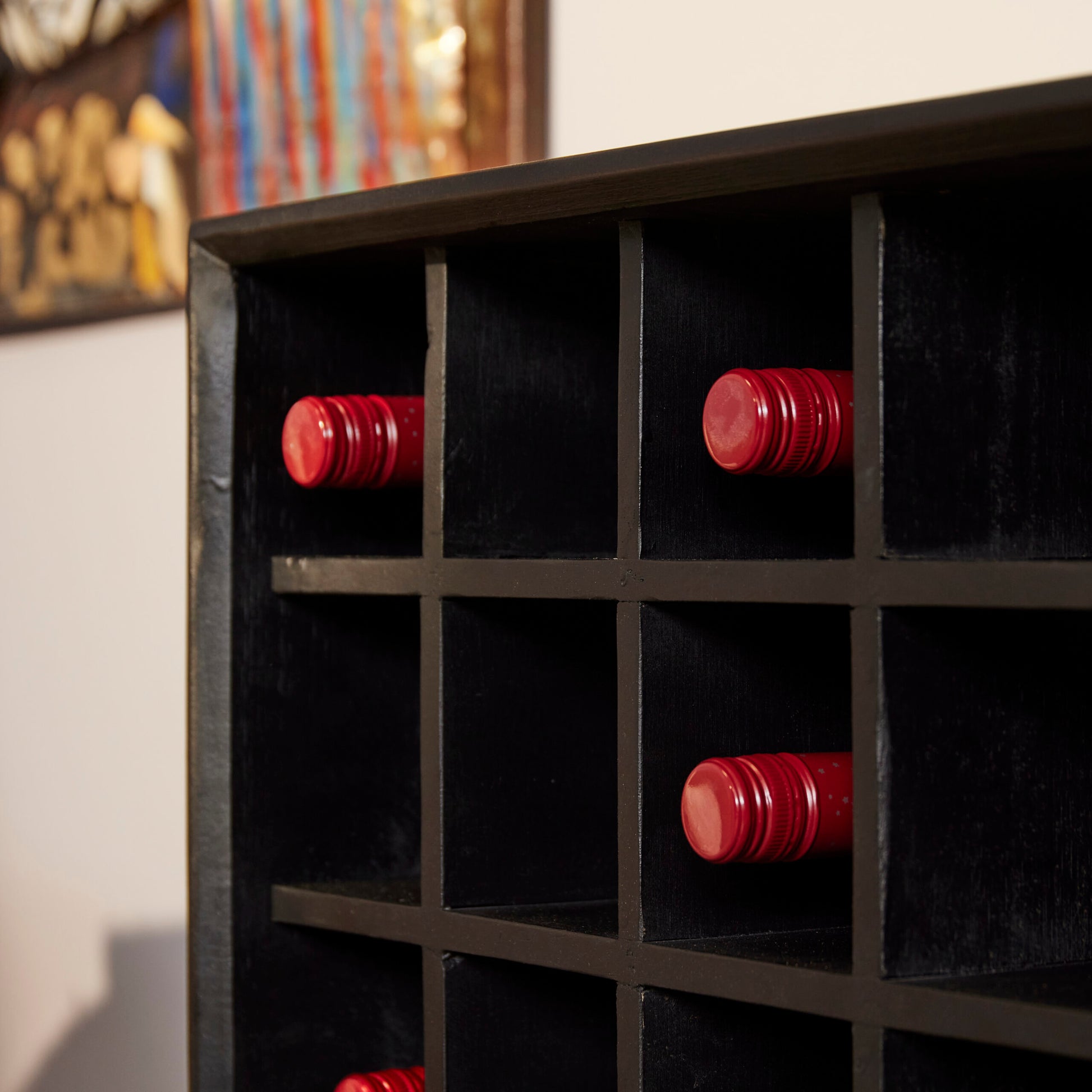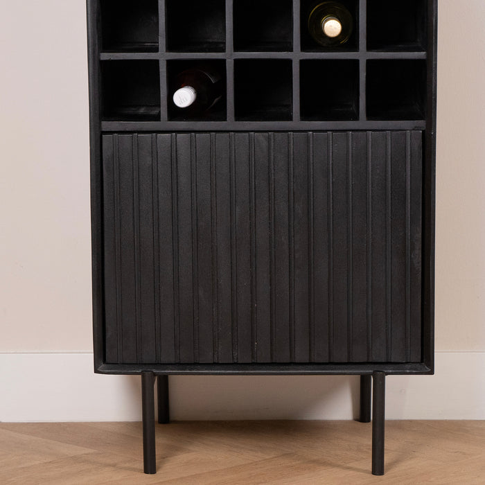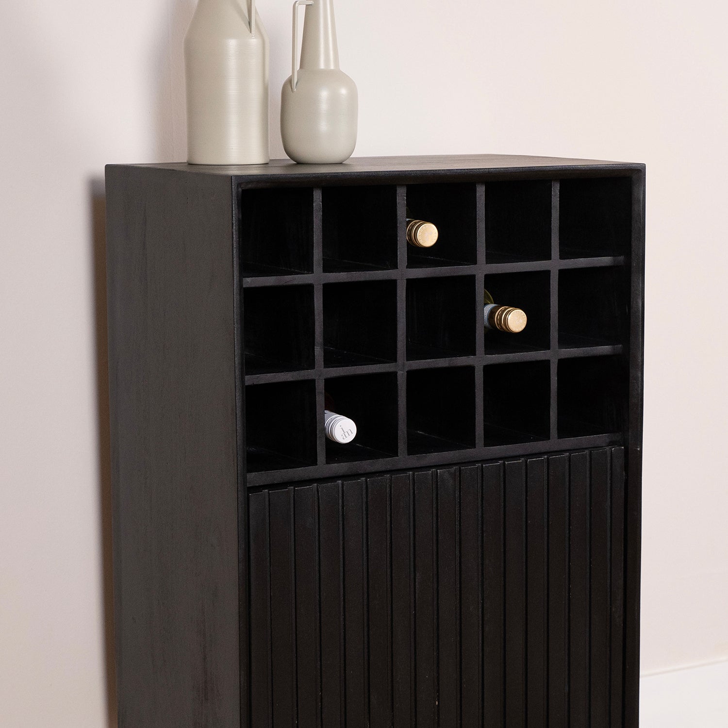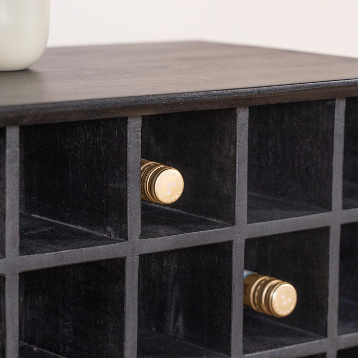 Ben je op zoek naar een stijlvolle en praktische kast voor een mooi assortiment wijnflessen? Kies dan voor deze wijnkast in zwart mangohout.