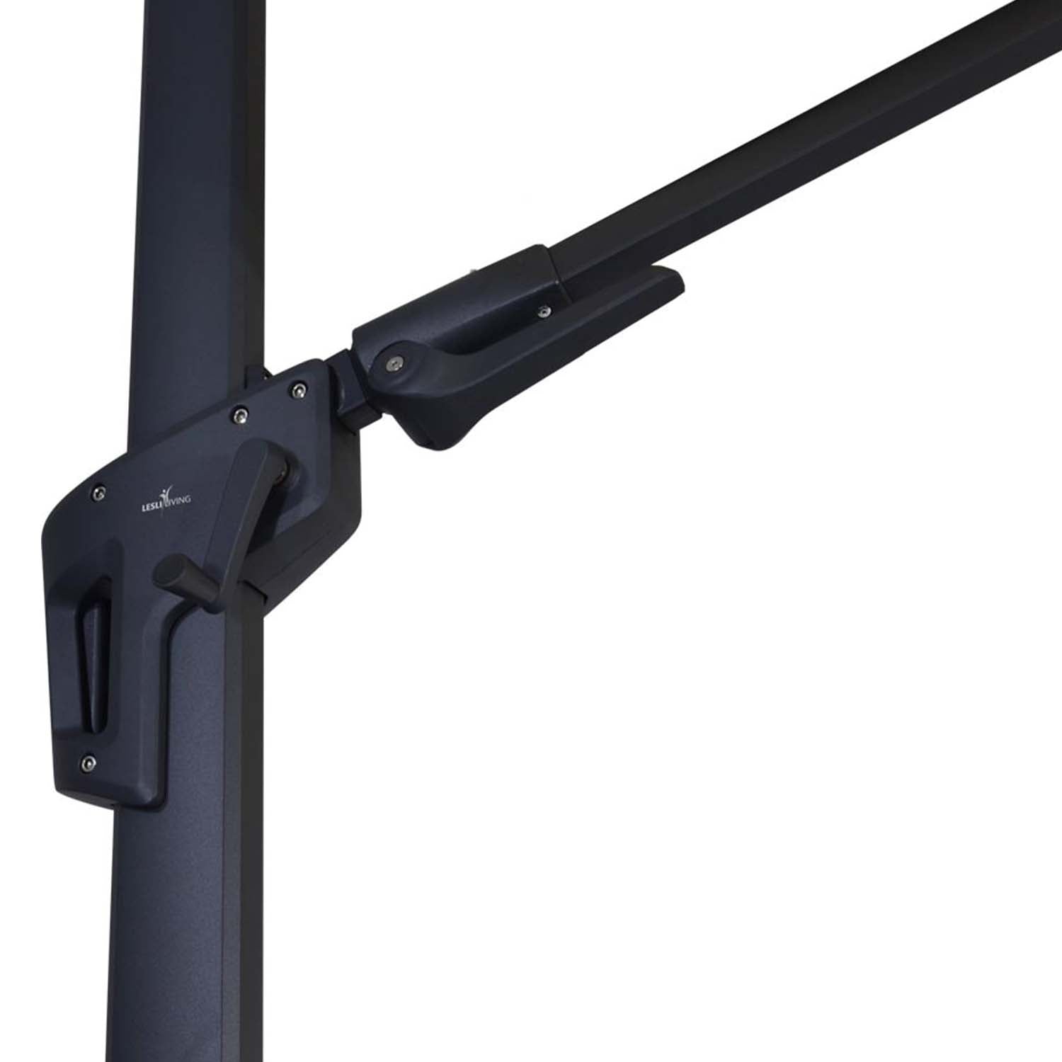 Deze elegante en functionele toevoeging aan je buitenruimte biedt niet alleen bescherming tegen de felle zon met een UV-bescherming van 50+, maar voegt ook een vleugje stijl toe aan je terras, tuin of balkon. Met zijn slanke ontwerp en duurzame constructie staat onze zweefparasol garant voor langdurig gebruik en genot, seizoen na seizoen. De parasol is horizontaal 45° draaibaar, heeft een handige slinger en een veersysteem voor gemakkelijk gebruik.